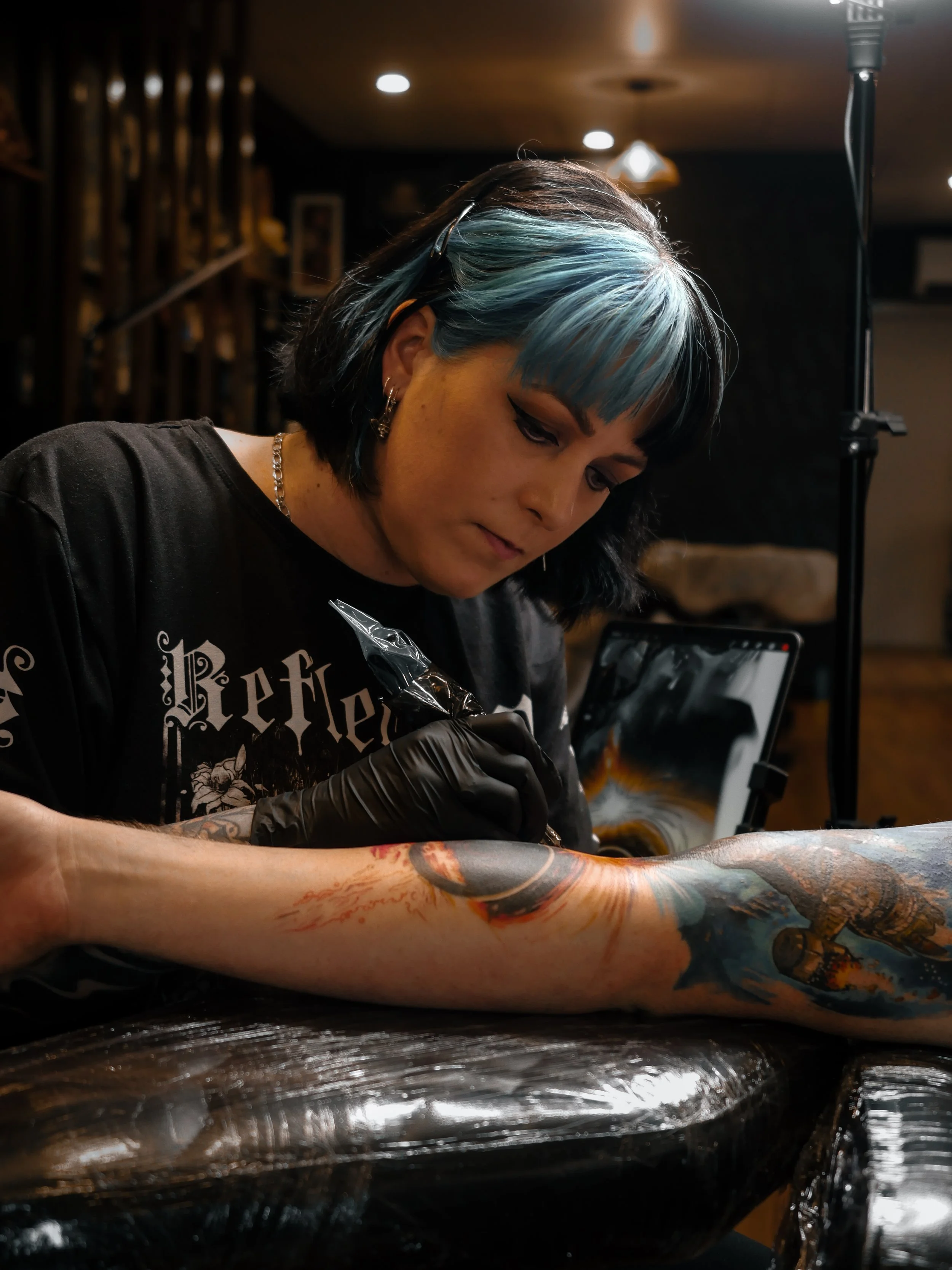 Kelly is our versatile tattooer, tattooing for over 6 years in many different styles.